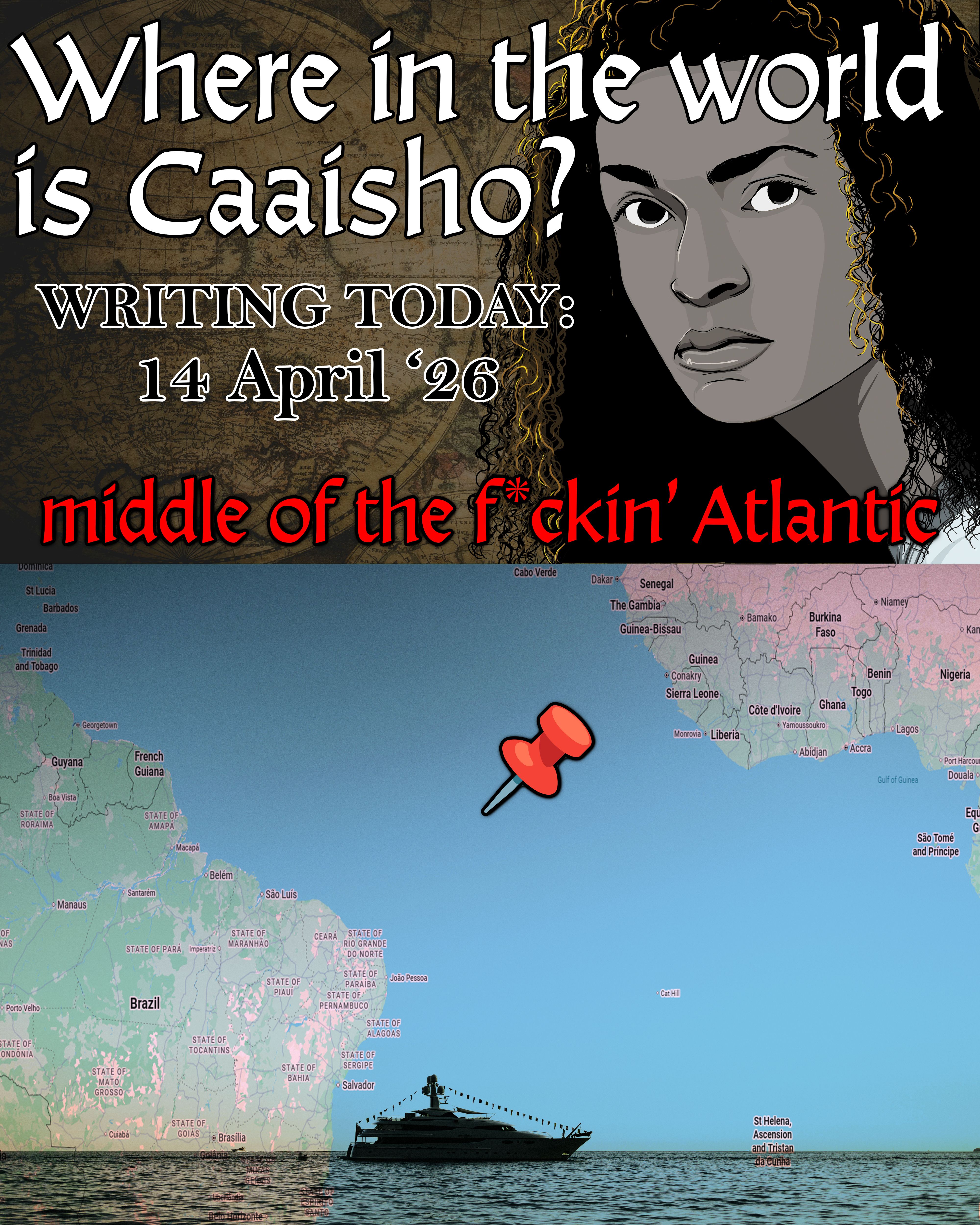 I am indeed cranking along as best I can with Blood Depths. Caaisho has left Trinidad nowâin less-than-willing company with our favorite Trinidadian pirateâand is now half-way across the Atlantic. Iâm so excited about Caaishoâs part of the story. And Nooshâs. This is going to be such a good book!