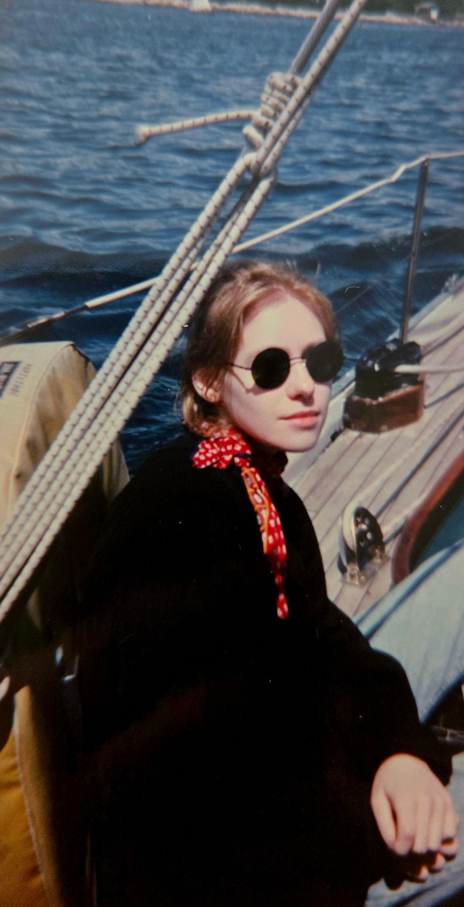 Here I am about age 17 on a boat. How thematic and everything! You can see how sick I am, though⌠And really not sure about that scarfâŚ